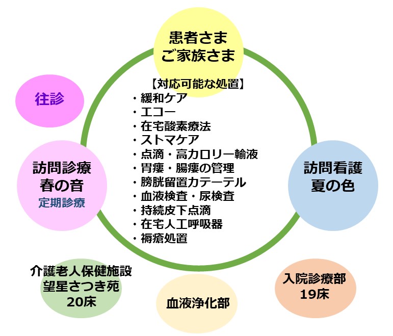 (例えば、点滴・褥瘡や創傷の処置・血糖管理など、ご相談ください)